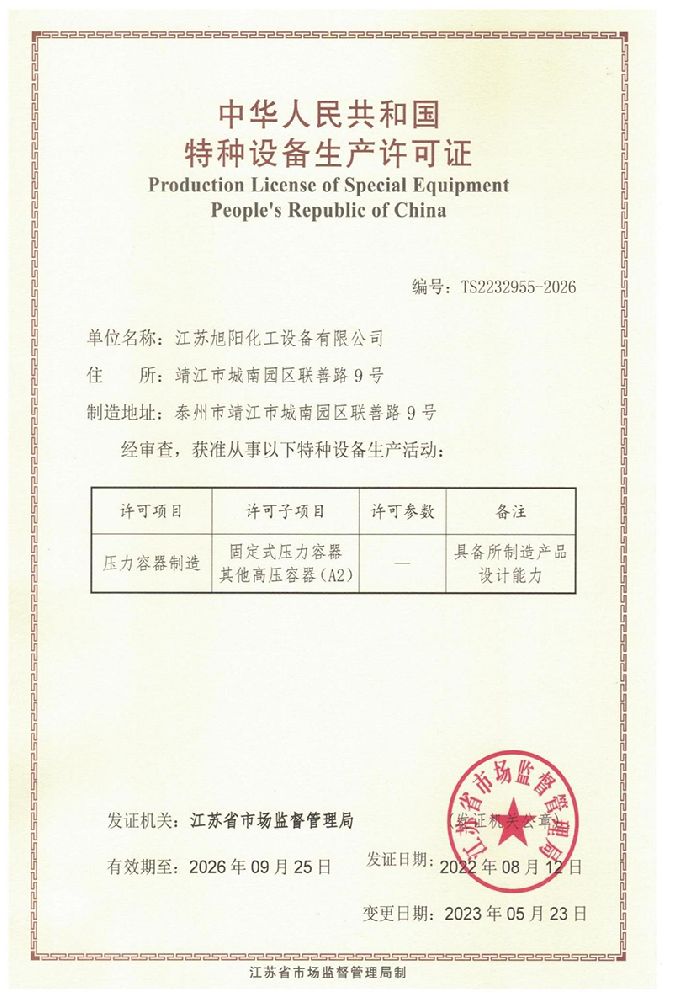 公司位于靖江經濟技術開發(fā)區(qū)城南園區(qū),地理區(qū)位優(yōu)越、交通便利,在全體員工的銳意講取和奮力拼搏下,江蘇旭陽化工設備近年發(fā)展強勁,規(guī)模迅速擴大。
